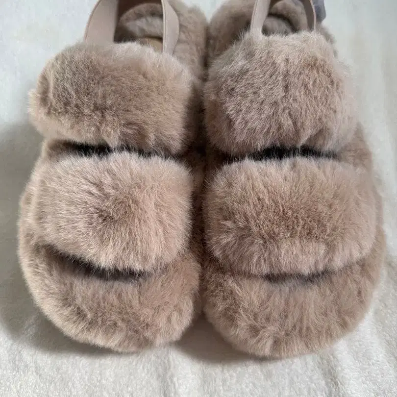 새상품 시마무라 퍼 샌들 복슬복슬 통굽 베이지 L 24cm