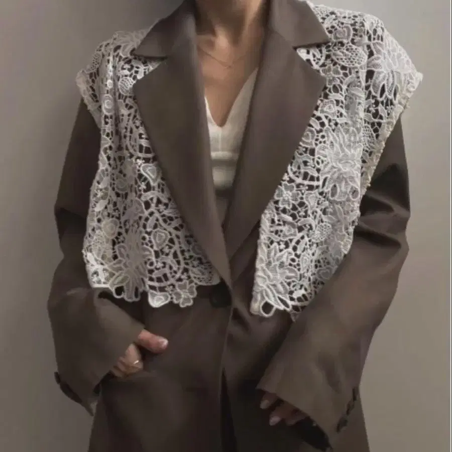 레이어드 스타일을 완성하는 레이스 베스트. 액세서리처럼 착용할 수 있는 레이어드 아이템입니다. 모던하고 페미닌한 분위기를 연출합니다.