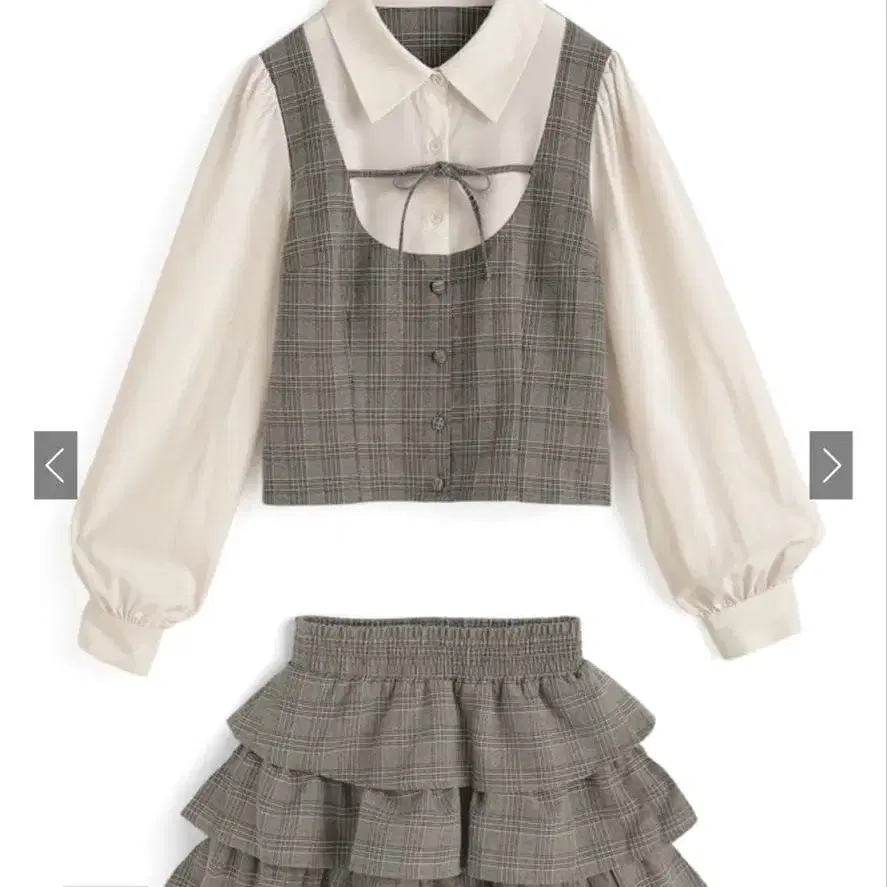 글렌체크 패턴 셔츠 도킹 상의 x 티어드 미니 스커트 셋업