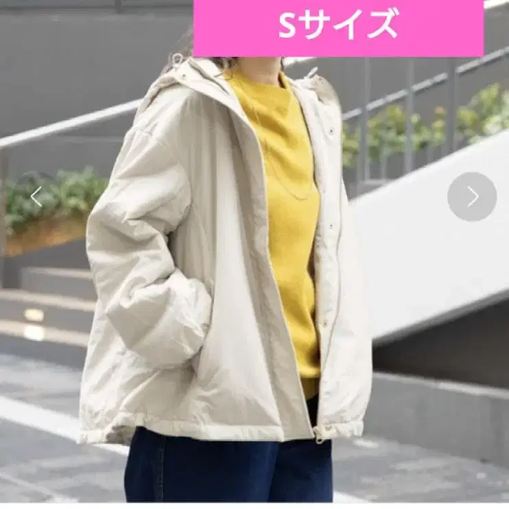 글로벌 워크 에어 써멀 후드 블루종 [ 사이즈 ] S (총길이 68 가슴둘레 116 어깨 너비 53.5 소매 길이 49 소매 둘레 50) [ 색상 ] 아이보리 [ 소재 ] 에어 써멀. 마치 다운처럼 부드럽고 따뜻한 착용감. 공기를 듬뿍 머금어 체온을 놓치지 않고 보온성이 높음. 겉감: 나일론 100% 안감: 폴리에스테르 100% 솜: 폴리에스테르 100% [ 디자인 ] 적당한 여유감으로 가볍게 걸치기 좋으며, 뒤쪽 기장이 약간 길어 허리 둘레도 안심. 밑단은 조일 수 있어 실루엣에 변화를 줄 수 있습니다. [ 스타일링 ] 밑단을 조이지 않고 입으면 A라인 실루엣이 되어 슬림 팬츠나 I라인 스커트와의 조합을 추천합니다. 플레어 스커트나 원피스와도 궁합이 좋습니다. 이 사이트에서 미사용 새상품으로 양도받았습니다. 매우 가볍고 따뜻하며 디자인도 귀여웠지만, 안타깝게도 제 체형에는 어울리지 않아 다시 판매하게 되었습니다. 꽉 압축하여 간편 포장으로 배송됩니다. 택 포함 미사용 새상품이지만, 자택 보관품입니다. 이해해 주시고 구매하실 분을 기다립니다.