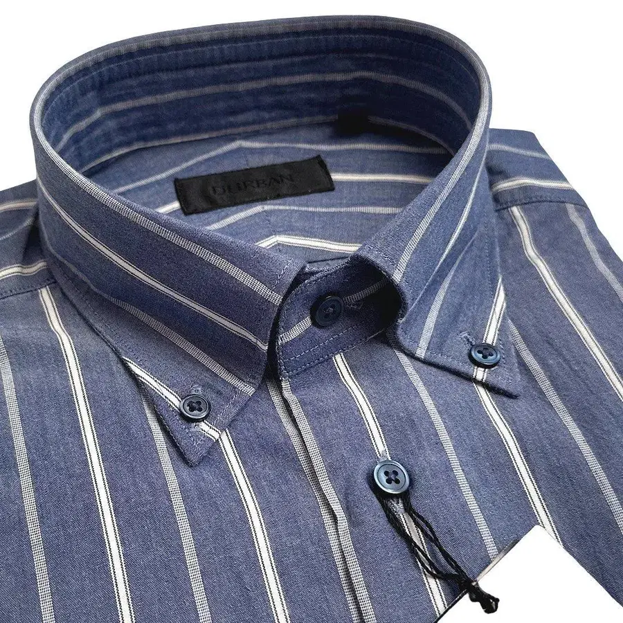 더반 긴팔 셔츠 드레스 셔츠 버튼 다운 스트라이프 네이비 S