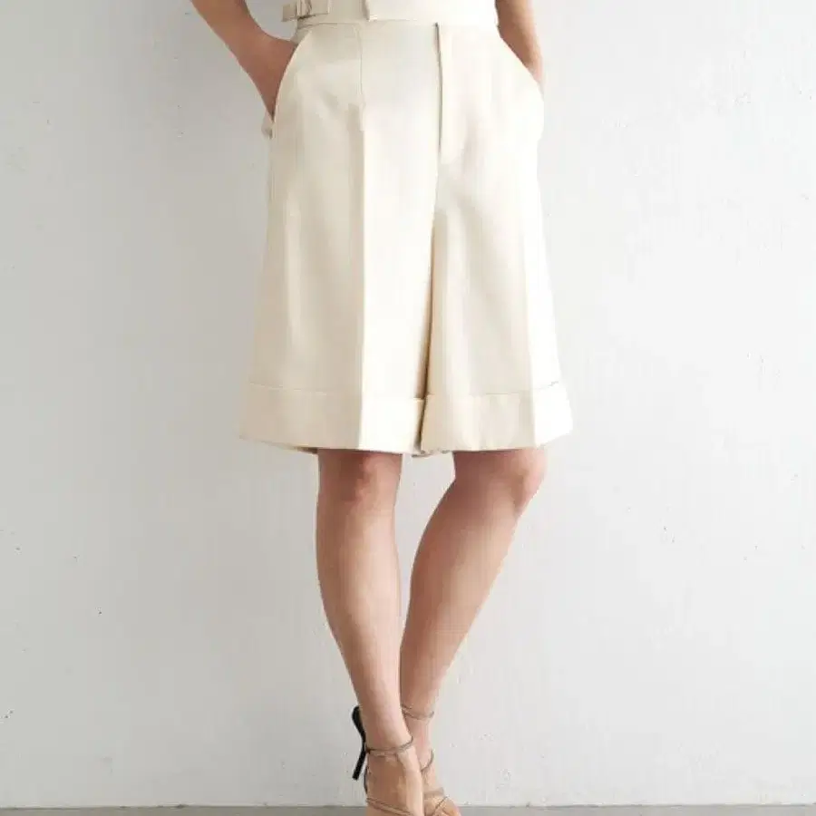 단시간 착용 정가 29,700엔 [ KYOKO HASEGAWA x Whim Gazette ] 매 시즌 큰 호평을 받는 스페셜 콜라보 컬렉션 ■ 어른스러운 스타일링에 경쾌한 분위기를 더해주는 하프 팬츠. ■ 너무 길지도 짧지도 않은, 무난해 보임을 억제한 무릎 위 기장의 절묘한 길이가 포인트. ■ 드라이한 터치의 소재를 사용하여 남성적인 분위기도 더했습니다. ■ 센터 프레스가 들어가 고급스러운 인상을 유지하면서도 적당한 여유가 다리를 슬림해 보이게 하는 실루엣. ■ 허리 조절 기능으로 사이즈감을 조정할 수 있으며, 여성스러운 대비감도 유지합니다. ■ 트렌드를 따르면서도 클래식하게 연출할 수 있는, 어른들이 즐길 수 있는 숏팬츠. [ COLOR ] 아이보리: 다른 곳에서는 볼 수 없는 특별한 노란빛이 도는 에크루 컬러. [ MATERIAL ] 가는 실을 고밀도로 짜내어 능직이 돋보이며, 남성적인 박력 있는 소재감으로 완성한 모헤어 혼방의 드라이 터치가 특징인 개버 소재.