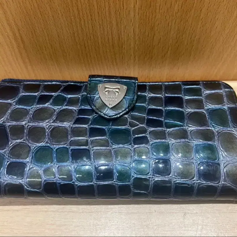 COCCO FIORE (코코 피오레) 악어 엠보싱 가죽 장지갑 블루