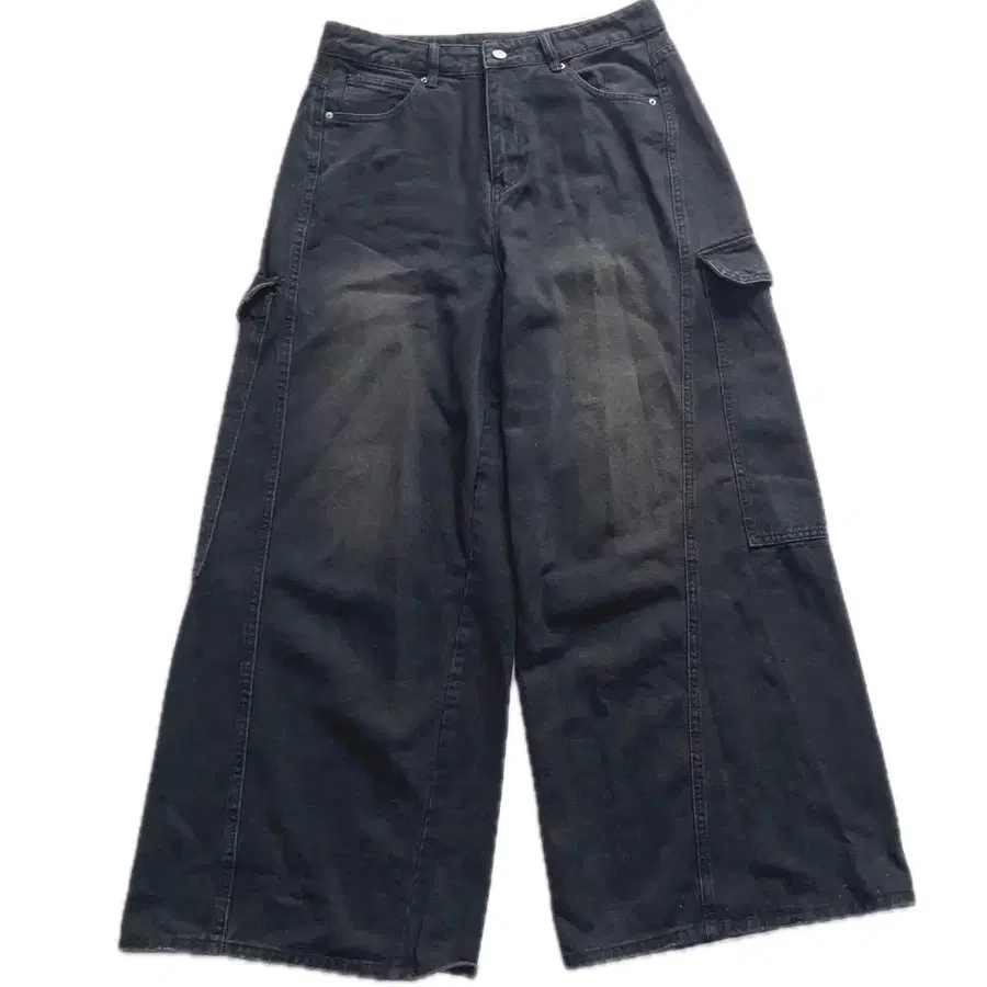 구제 와이드 데님 카고 배기 팬츠 블랙