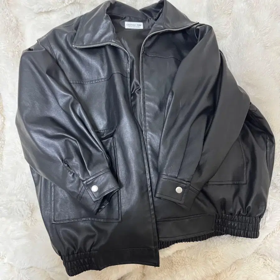 차오패닉 블랙 합성 피혁 벌룬 자켓
