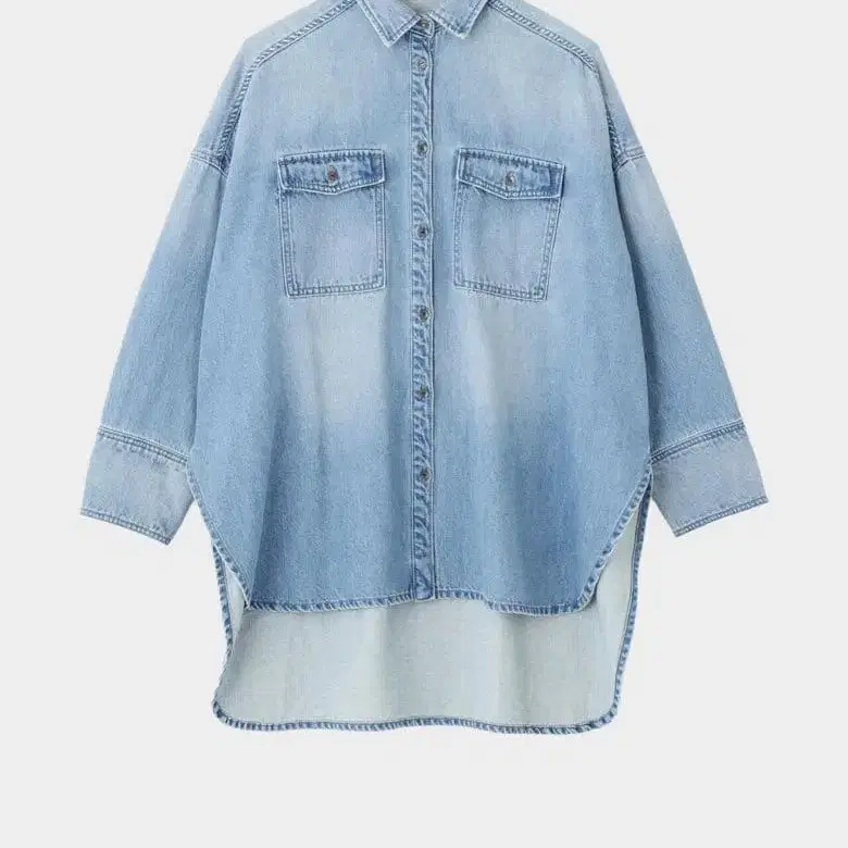 남성적인 오버 실루엣에 여성스러운 디테일을 더한 데님 셔츠.
