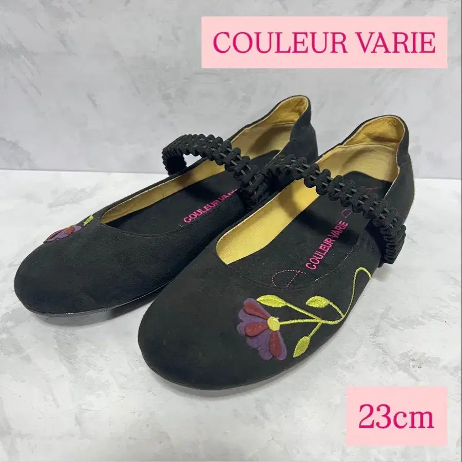 미사용 새상품 couleur varie 스트랩 신발 자수 블랙 스웨이드