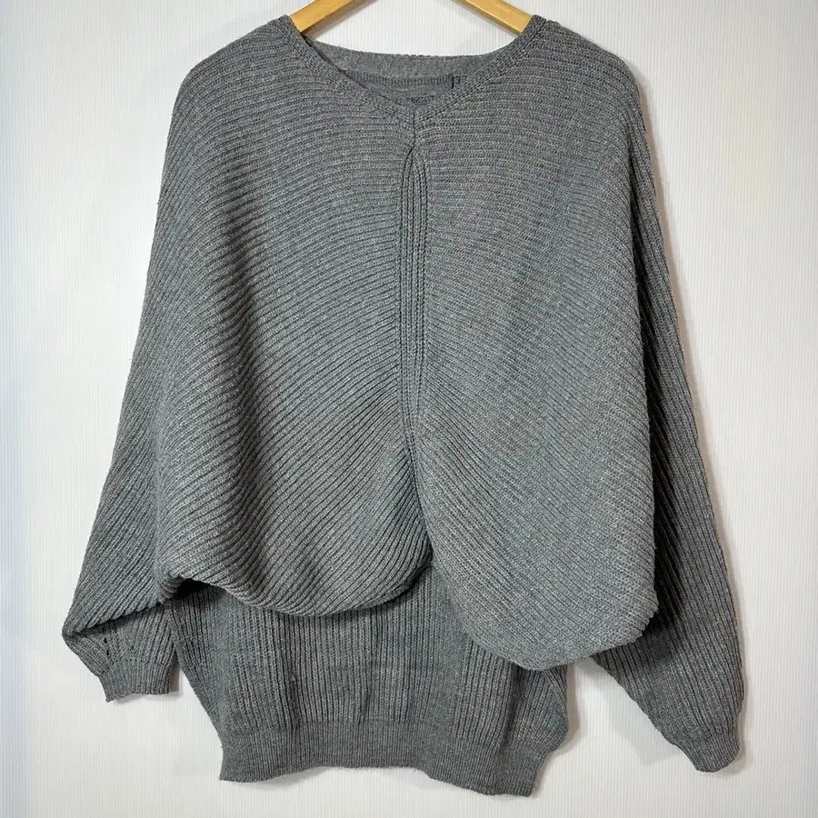 자동 번역되었어요. 원문보기리브 오버사이즈 긴팔 니트, 그레이.