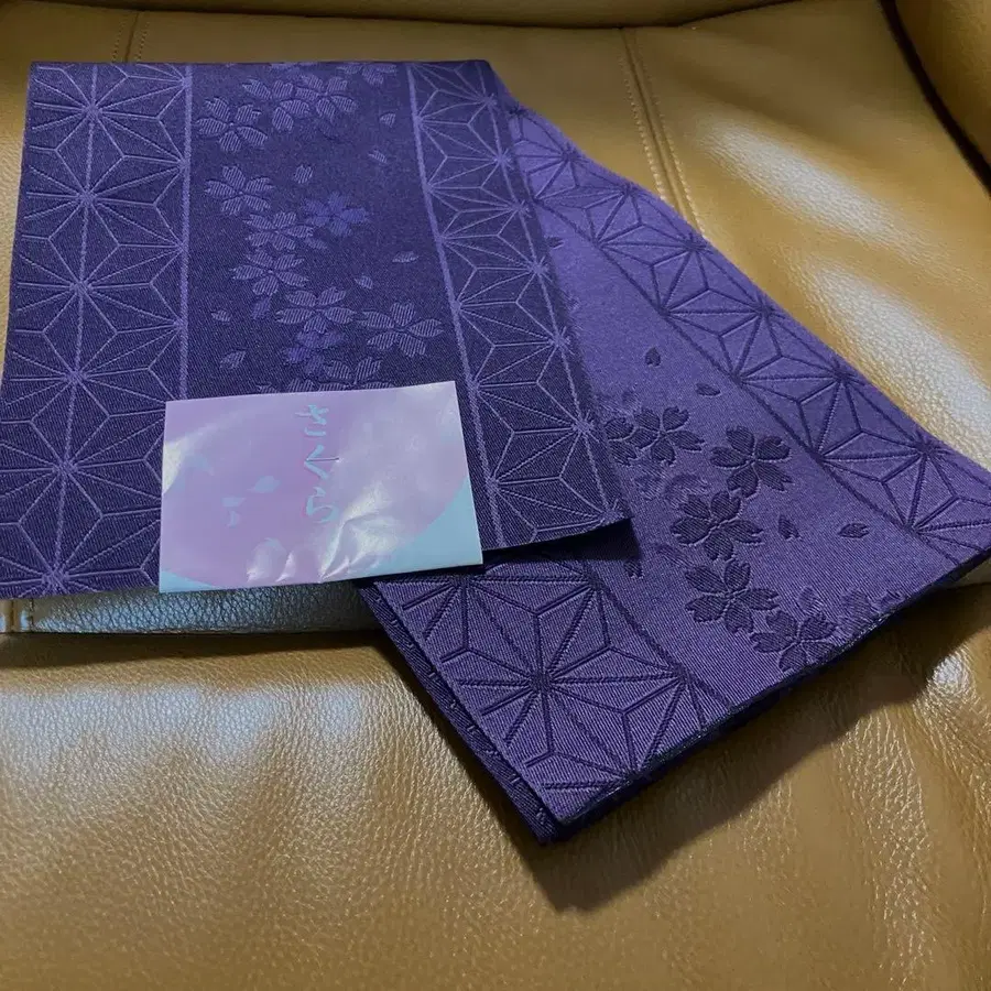 보라색 벚꽃 무늬 반폭 오비 일본제