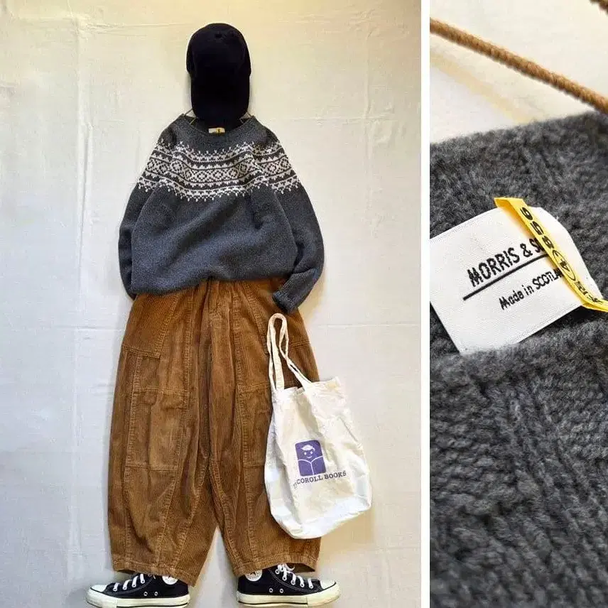 구매 전 프로필도 확인해 주세요. 비샵에서 구매한 MORRIS & SONS의 스테디셀러 니트입니다. 호주 남서부의 지롱 지방의 새끼 양에서 얻은 지롱 램스울은 포근하고 부드러운 촉감으로 많은 공기를 머금을 수 있어 따뜻하고 가벼운 마감이 특징입니다. 표기 사이즈는 34, 여성용 M 사이즈 정도라고 생각합니다. 자세한 사이즈는 평평하게 놓았을 때 사이즈를 참고하여 가지고 계신 니트나 상의와 비교해 주세요. 영국제, 10회 정도 착용, 클리닝 완료, 얼룩은 보이지 않습니다. 함께 코디한 코토포네의 롱 스커트도 판매 예정입니다. ◆ 평평하게 놓았을 때 사이즈 ◆ *기장---약 62cm(어깨~밑단) *가슴 너비---약 48cm *소매 길이---약 67cm(옷깃~소매) *표기 사이즈---34 *소재---울 100% *색상---그레이 단톤 존 몰로이 캐레이그 돈 제이미슨 인버아란 아테나 디자인 할리 오브 스코틀랜드 마가렛 호웰 야에카 프릿 츠무구 그린 이치 앤티크스 미즈이로 인드 D.G.Y. 큐브 슈가 소울베리 빔즈 보이 나츄란 키나리노 클라스카 무인양품 나카가와 마사시치 상점 등을 좋아하시는 분들께도.