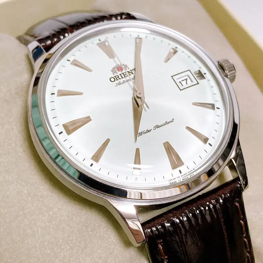 오리엔트 밤비노 자동 와인딩 손목시계 화이트