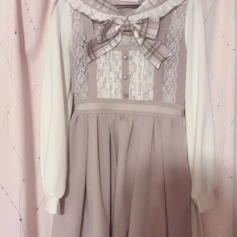 LIZLISA 레이스 에이프런풍 카슈쿨 원피스 긴팔 핑크