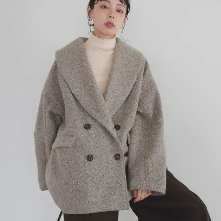 • 와이드 숄카라 리버 코트 프레이 아이디
