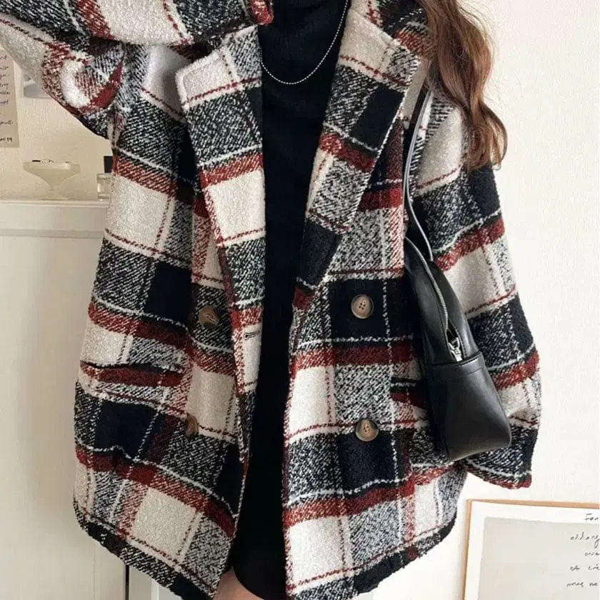 mily bilet 기모 부클 체크 무늬 더블 자켓 코트