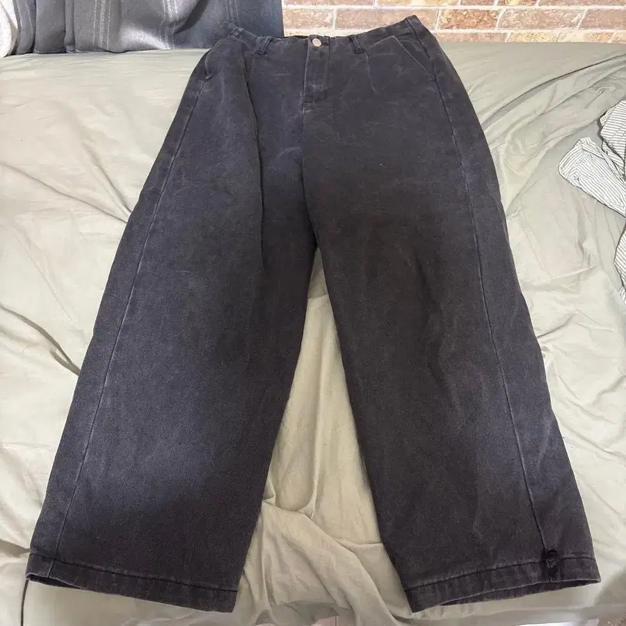 블랙 와이드 팬츠 스트레이트 컷 fuv 데님