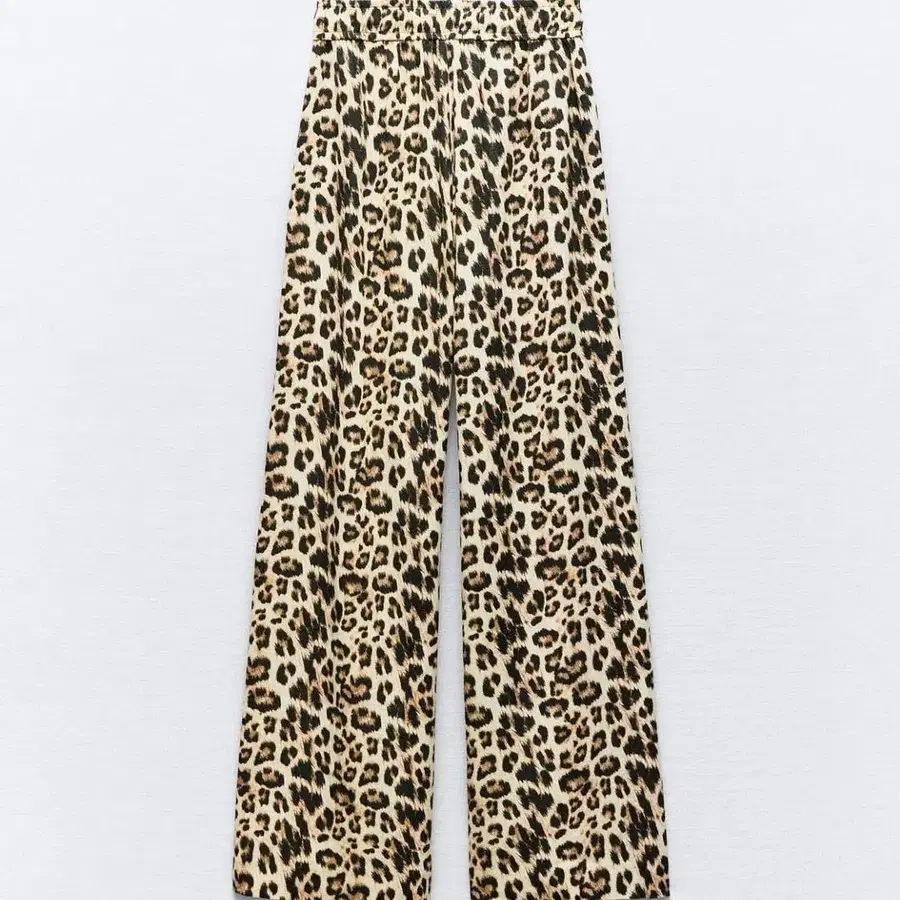 [ ZARA ] 애니멀 프린트 린넨 블렌드 와이드 레그 팬츠