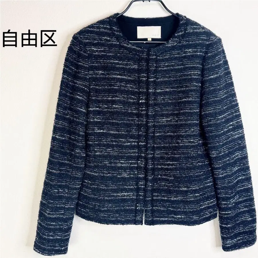 [ 상세 ] 실버 라메가 섞인 네이비 컬러 계열의 트위드 원단이 사용되었습니다.