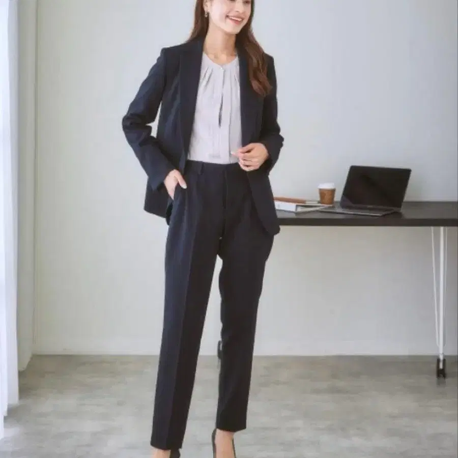 9부 기장 테이퍼드 스트레치 팬츠 수트 셋업