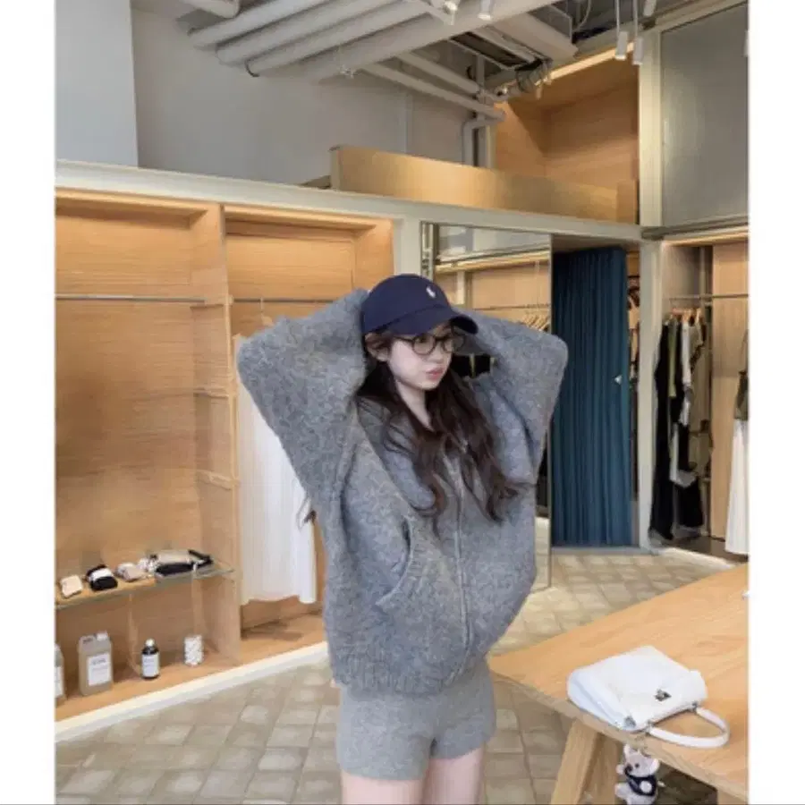 그레이 후드 부착 니트 후드티 프리 사이즈