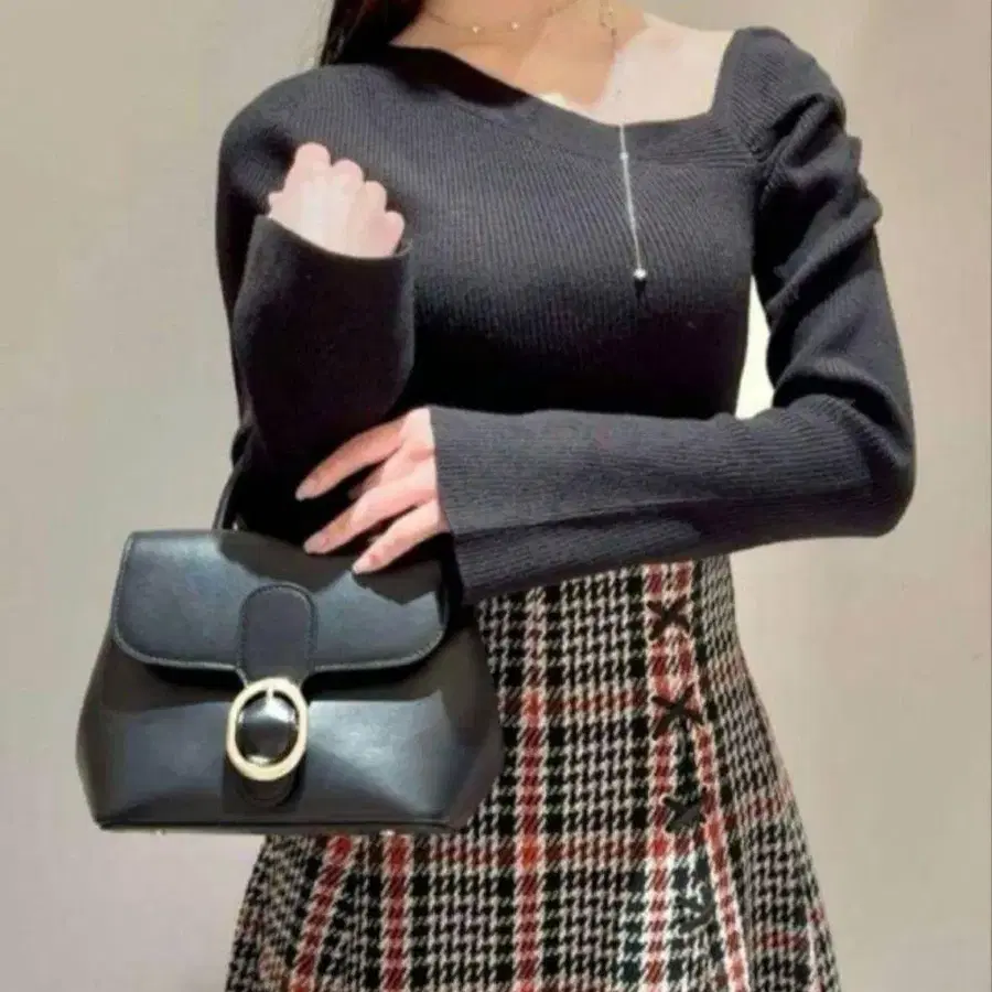 • 클래식 엘프 블랙 페플럼 니트 긴팔 상의