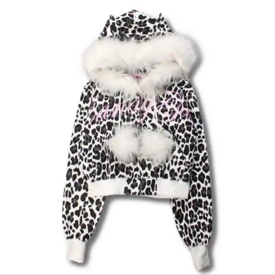 [ GALFY ] 갸루마시 파카 레오파드 무늬 인조 모피 지퍼 후드티