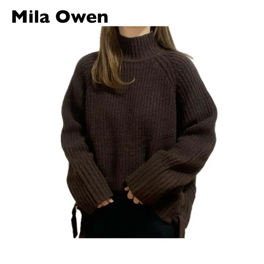Mila Owen 미라 오웬 사이드 레이스업 터틀 니트