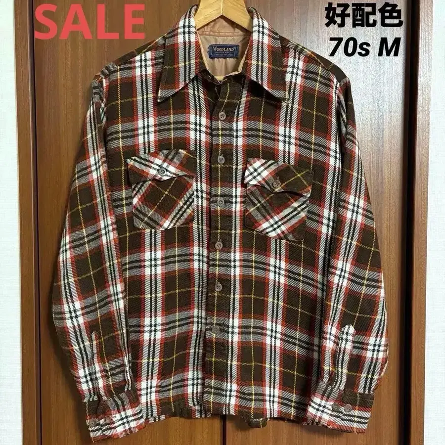 좋은 배색 70s WOOD LAND 플란넬 셔츠 M 체크 무늬