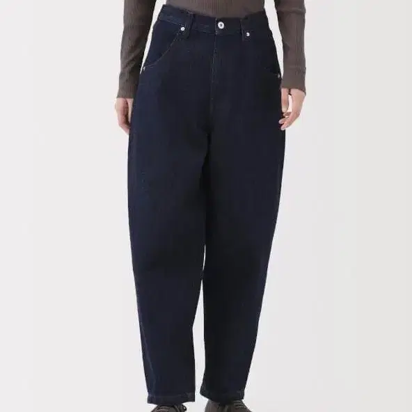 무인양품 여성 나무 열매로 만든 카포크 혼방 데님 배럴 팬츠 L
