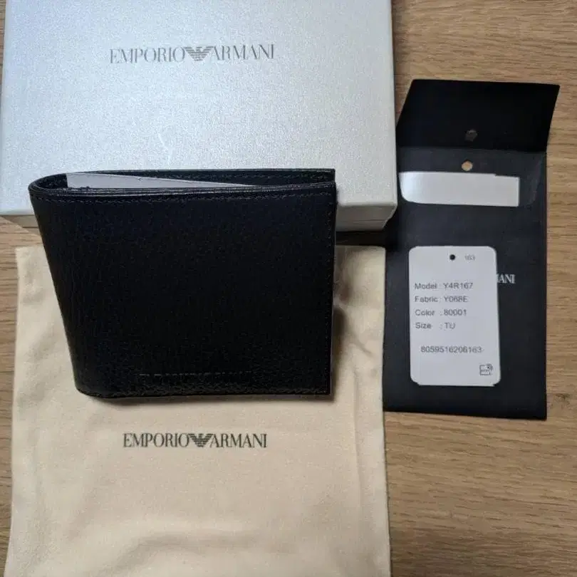 엠포리오 아르마니 접이식 지갑 텀블 가죽 남성용 블랙
