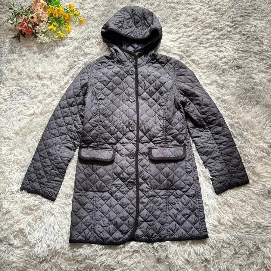 • 새상품급 라벤햄 보아 안감 후드 퀼팅 코트 롱 현행 택 34