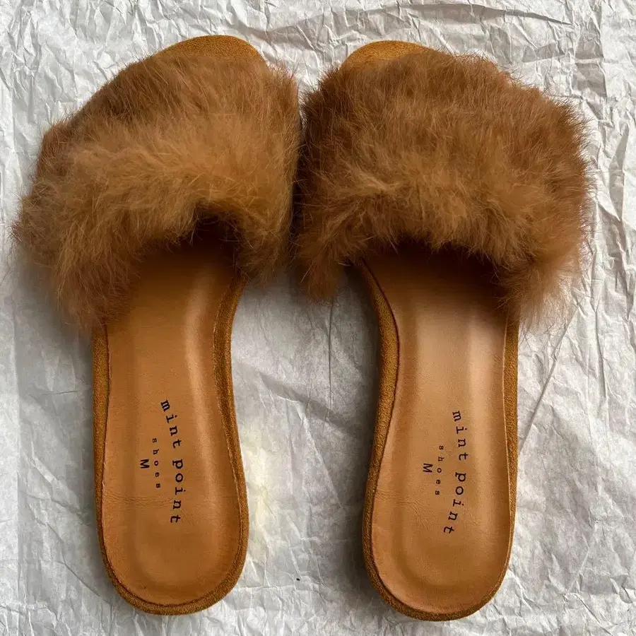 새상품 mint point 퍼 샌들 카멜 M 사이즈 힐 2cm