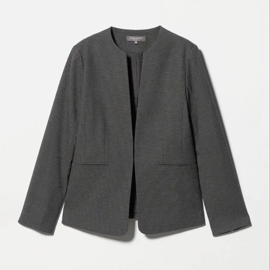 슬래시 넥과 같은 디자인의 노카라 자켓입니다.