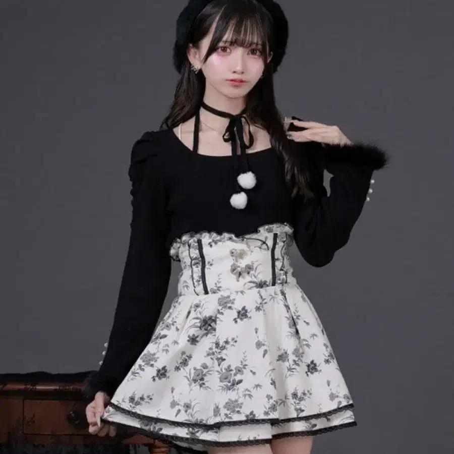 Palelfy 파르엘피 퍼 달린 리본 소매 컨셔스 니트