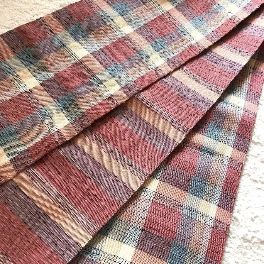순수 실크 반폭 오비 핑크, 터콰이즈, 코랄의 파스텔 체크와 보더