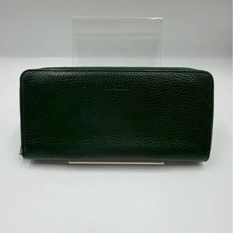 다크 그린 색상의 가죽 장지갑, BARCOS 로고 포함.