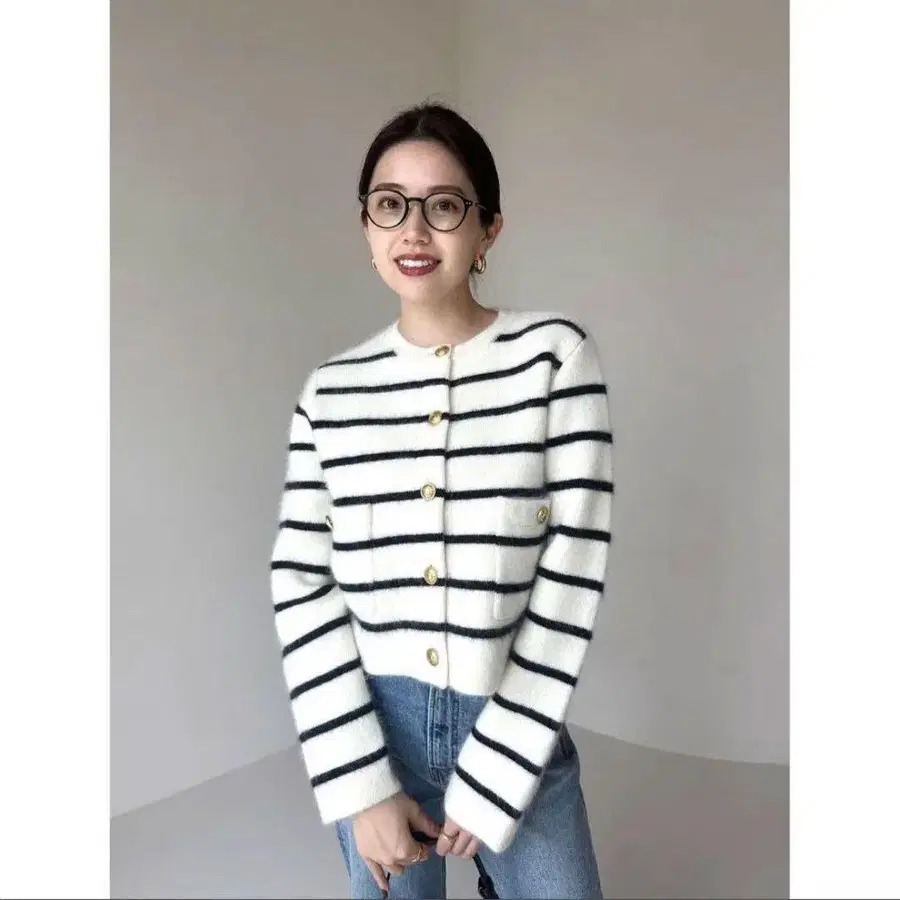 anuans 라쿤 블렌드 노카라 니트 자켓 BORDER