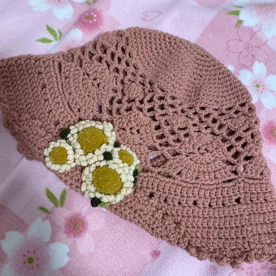PINK HOUSE 꽃 모티브 크로셰 뜨개질 니트 모자