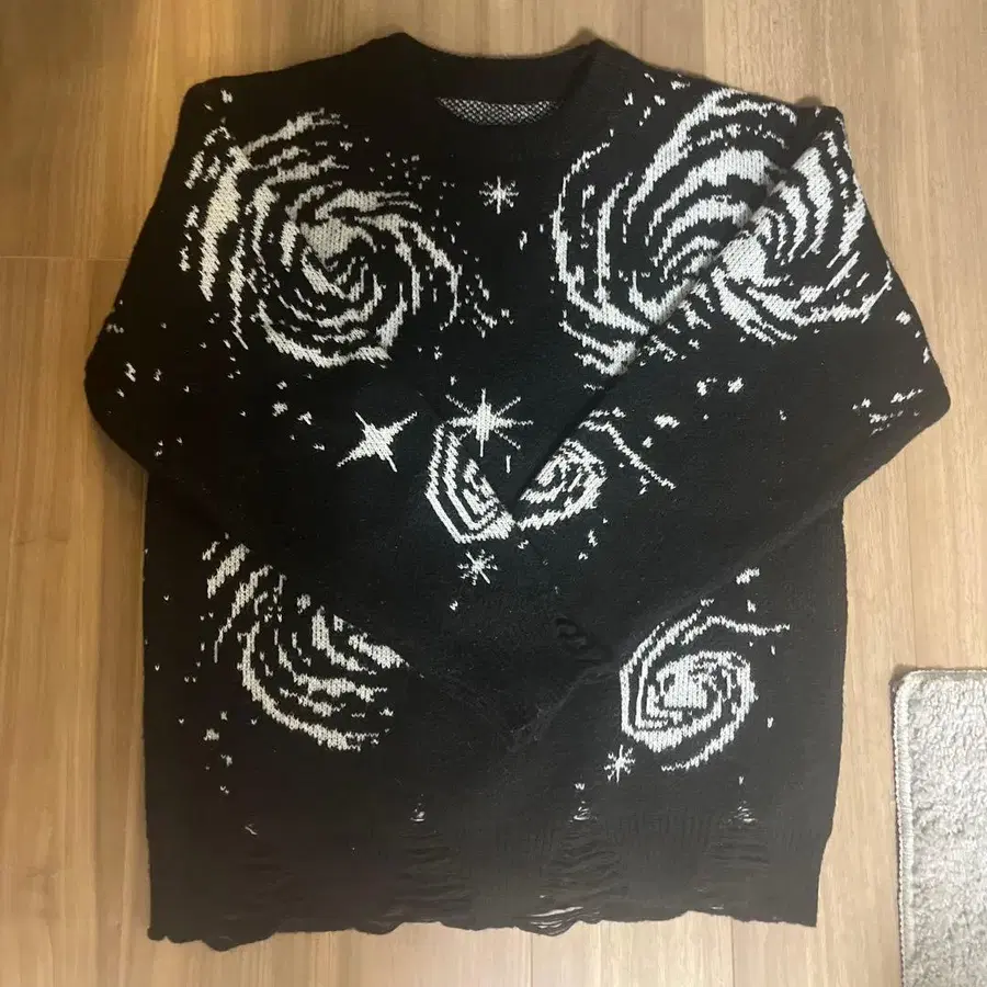 은하 무늬 긴팔 니트 스웨터 블랙 화이트