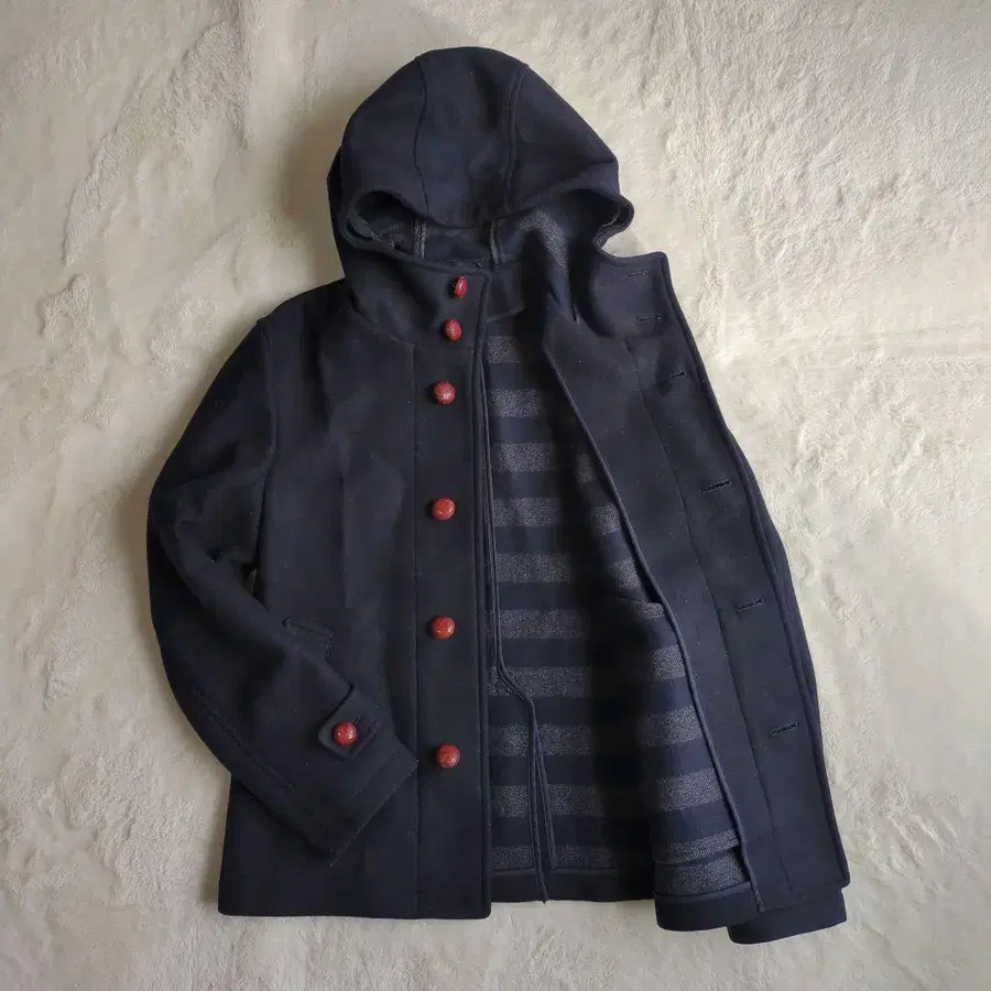 그린 라벨 릴랙싱 울 코트 에덴 버튼 후드 네이비