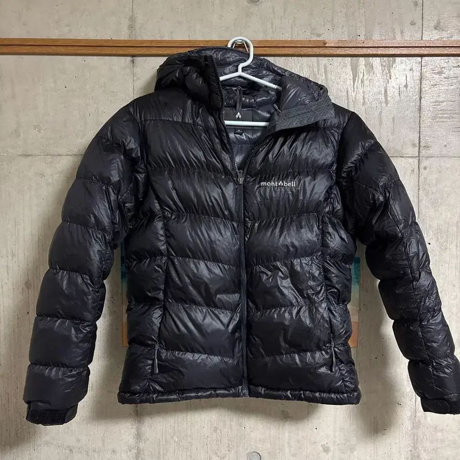 mont-bell 블랙 후드 부착 다운 자켓
