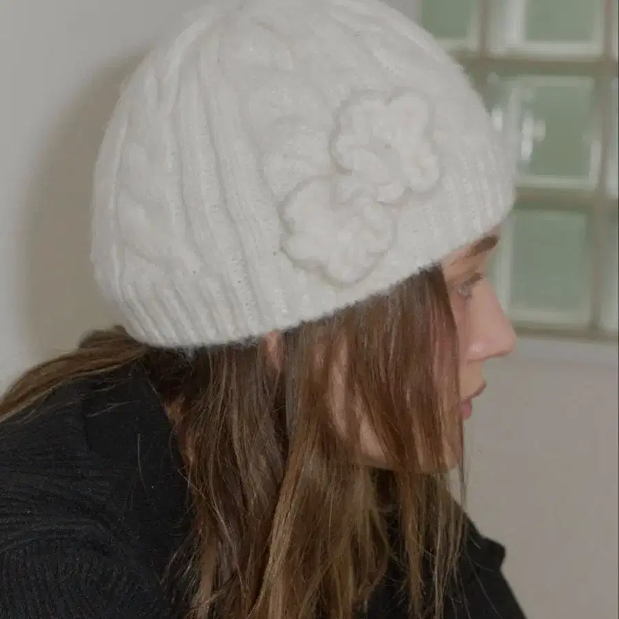 미사용 새상품 GIUNON 플라워 케이블 니트 캡