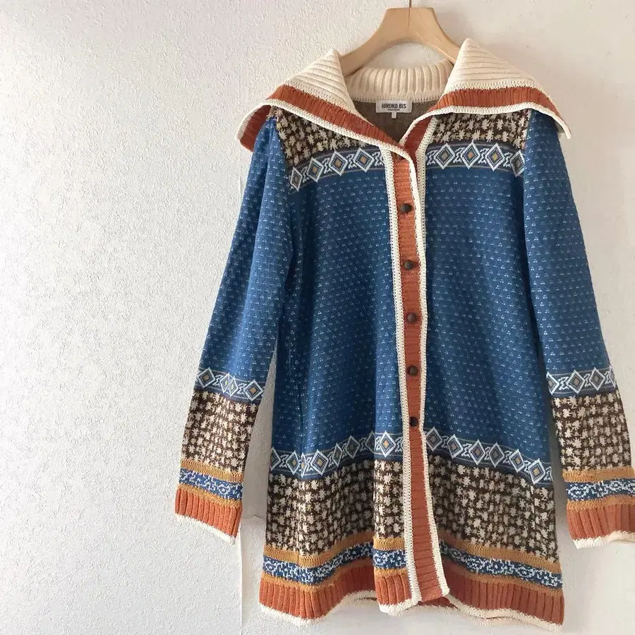 HIROKOBIS (히로코비스)의 노르딕 무늬가 눈길을 끄는 니트 코트/롱 가디건입니다. 블루를 베이스로 브라운, 아이보리, 테라코타 계열의 배색이 아름다우며, 히로코비스다운 디자인성이 높은 아이템입니다. 허리의 니트 리본으로 실루엣 조절이 가능하며, 앞을 열어도 닫아도 멋스럽게 착용하실 수 있습니다. 적당한 두께의 니트 소재로, 가을/겨울 겉옷으로 활용하기 좋습니다. ⸻ 표기 사이즈 9 실측치수 (평평하게 놓음) 기장: 68cm 어깨 너비: 40cm 가슴 너비: 51cm 소매 길이: 57cm ※ 약간의 오차는 양해 부탁드립니다. ⸻ 소재 모 59% 아크릴 41% ⸻ 상태 눈에 띄는 얼룩이나 데미지는 보이지 않으며, 전반적으로 양호한 상태입니다. 구제 의류에 이해가 있는 분께 추천합니다. *평평하게 놓은 상태에서 측정했습니다.* *개인에 의한 측정으로 약간의 오차는 용서해 주십시오.* *함께 코디한 의류나 잡화는 상품에 포함되지 않습니다.* ※ 궁금한 점은 질문 기능으로 부담없이 댓글 달아주세요. ※ 꼼꼼히 검품하지만, 간과할 정도의 데미지가 있을 수 있으니 예민하신 분의 구매는 삼가해 주십시오. 최대한 컴팩트하게 접어서 발송해 드리겠습니다. 모니터 환경에 따라 색감이 다르게 보일 수 있습니다. #HIROKOBIS #히로코비스 #노르딕 #롱니트 #니트가디건 #겨울코디 #성숙캐주얼 #백화점브랜드