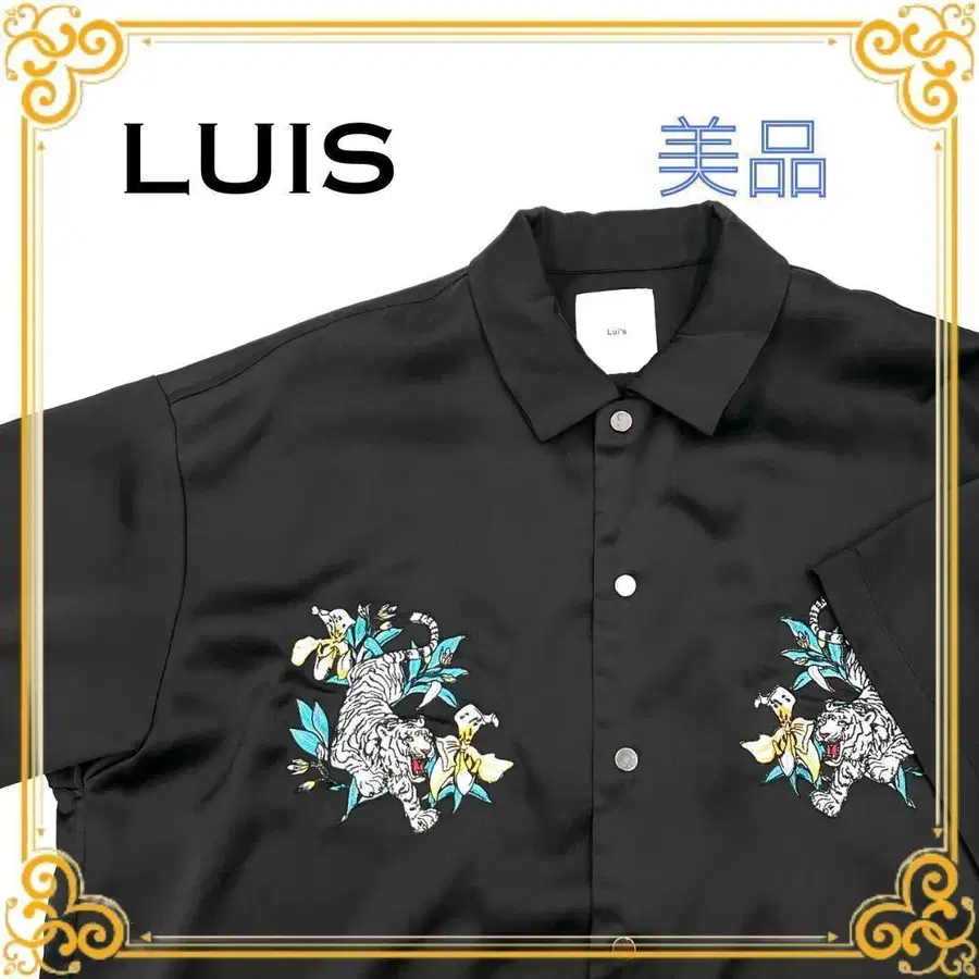 Lui's 루이스 호랑이 자수 오픈 카라 셔츠 반팔 블랙 검정