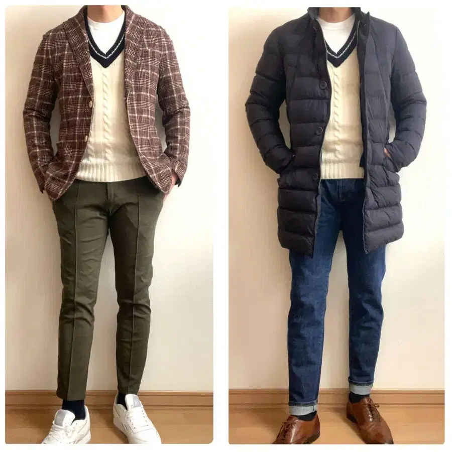 풀오버 니트는 분위기가 비슷해지기 쉽지만, 조금 다른 뉘앙스를 스타일링에 더하고 싶을 때는 이와 같은 칠든 니트가 매우 효과적이라고 생각합니다.