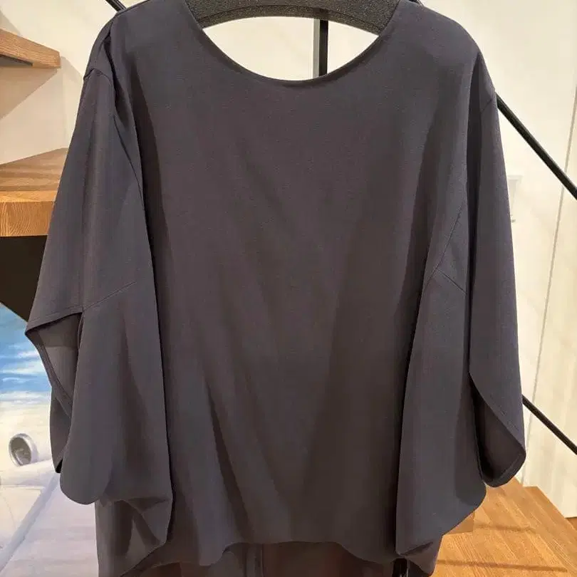 [ 시착만 한 미사용 ] 다크 그레이 플레어 슬리브 셔츠