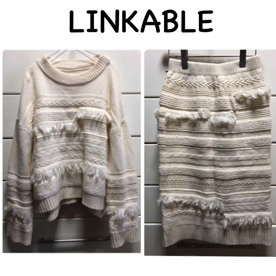 린카블 울 혼방 프린지 니트 스웨터 스커트 셋업 38