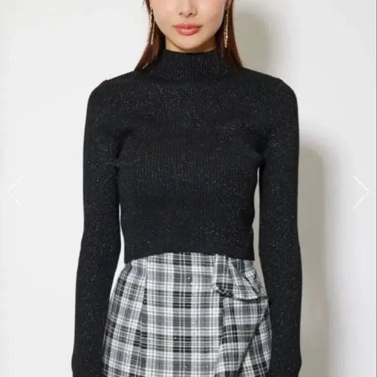 rienda 엄지손가락 구멍 워셔블 하이넥 니트탑
