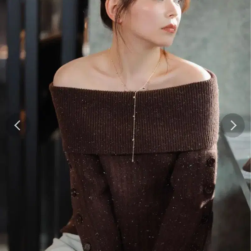 오프숄더 샤기 니트