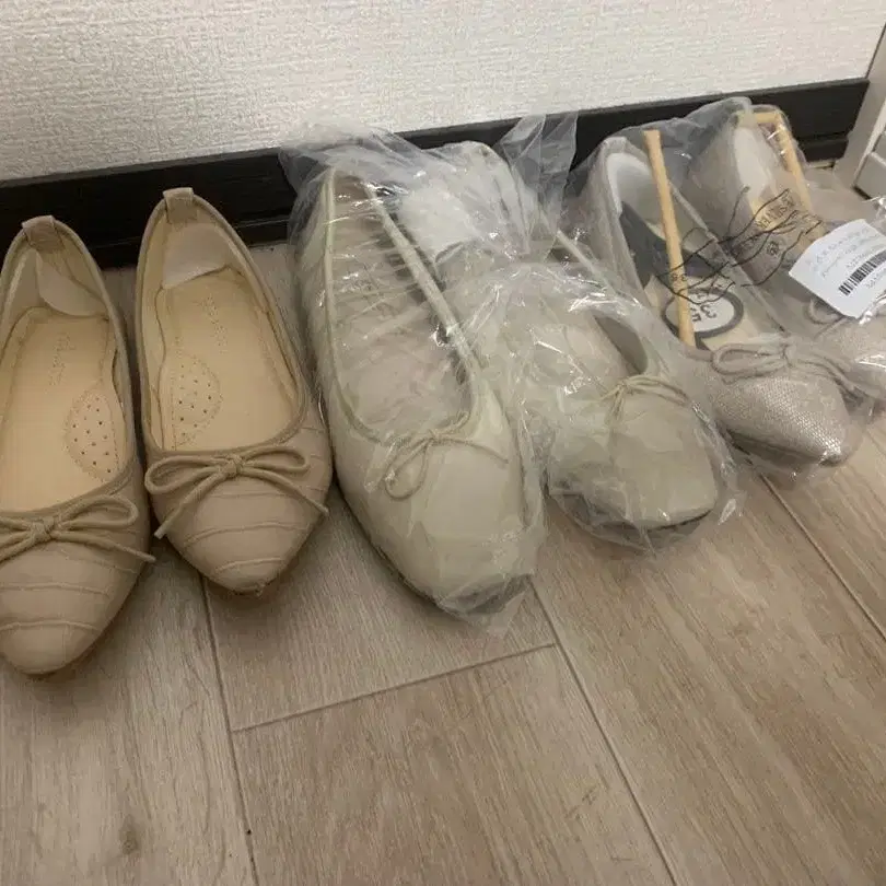 베이지 리본 포함 플랫슈즈 2켤레 세트