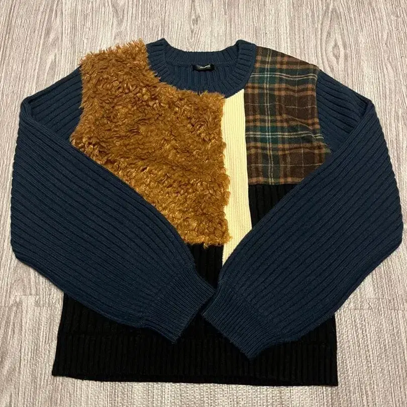 패치워크 디자인 긴팔 니트